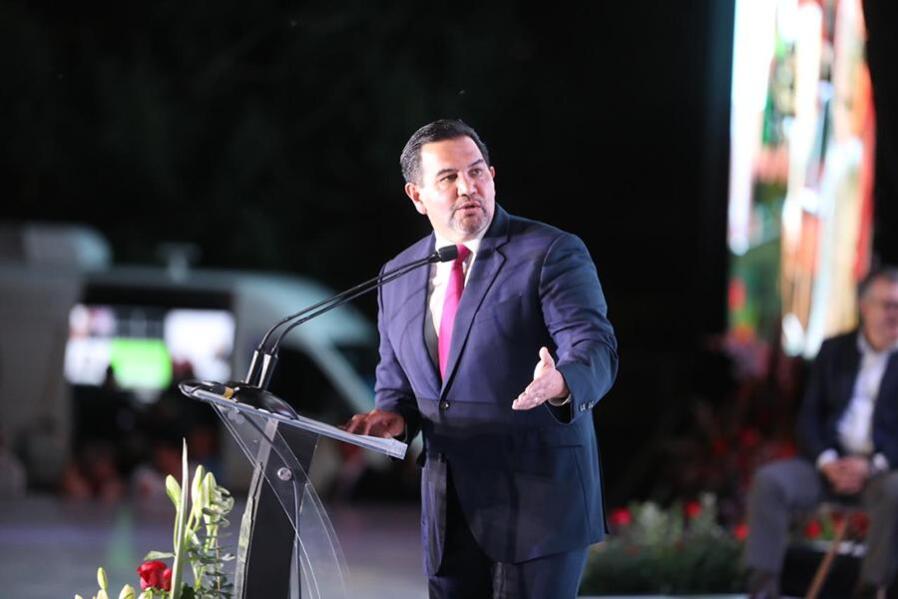 El alcalde estuvo esta tarde en la Plaza de la Mexicanidad en compañía de su esposa, la presidenta del DIF Municipal, Rubí Enríquez, así como de funcionarios, regidores y empleados que representaron a cada una de las direcciones. Ahí reconoció el trabajo de todos los trabajadores que han hecho posible esta transformación.