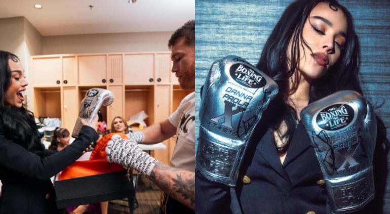 Por medio de redes sociales, la cantante mexicana Danna Paola compartió que el boxeador Canelo Álvarez le regaló unos guantes tras su presentación del Himno Nacional en el combate.