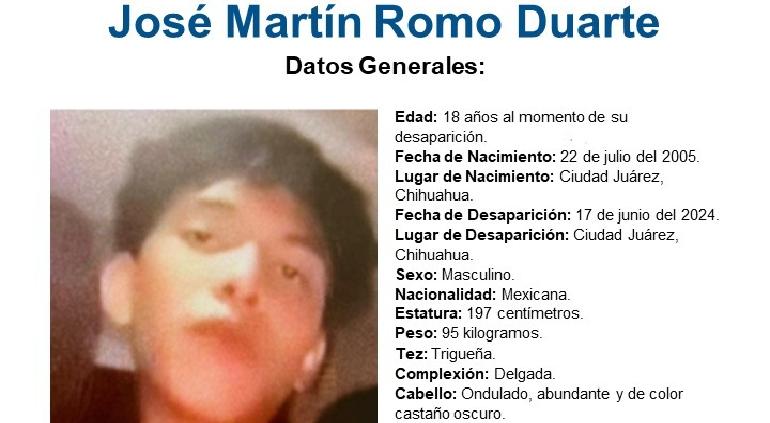 osé Martín Romo Duarte, de 18 años de edad, fue visto por última vez el pasado 17 de junio de 2024.